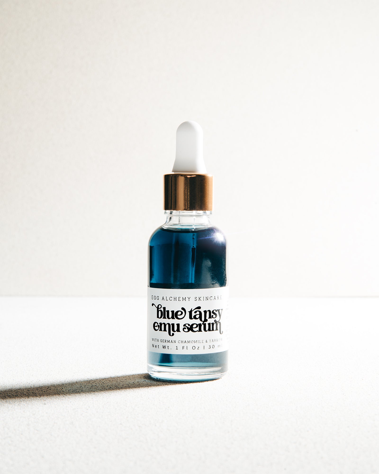 Our beautiful blue, animal-based serum is incredibly nourishing for all skin types, but especially helpful for those with skin prone to redness, breakouts, psoriasis, eczema, puffiness, and other skin irritations.