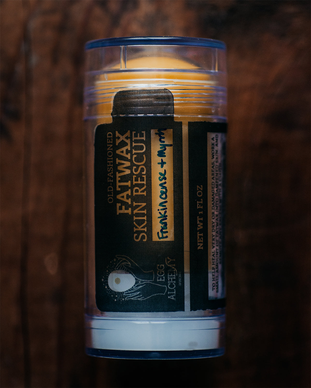 Grass-fed Beef Tallow, Beeswax, Egg Yolk Oil, Emu Oil, Vitamin E, Essential Oils (no Vitamin E or Essential Oils in the Unscented version.)