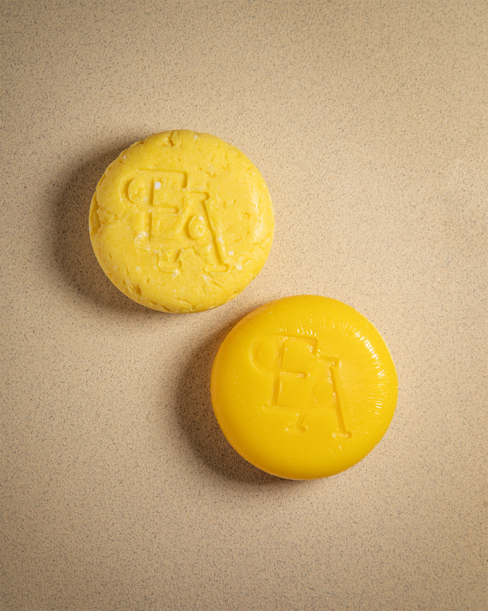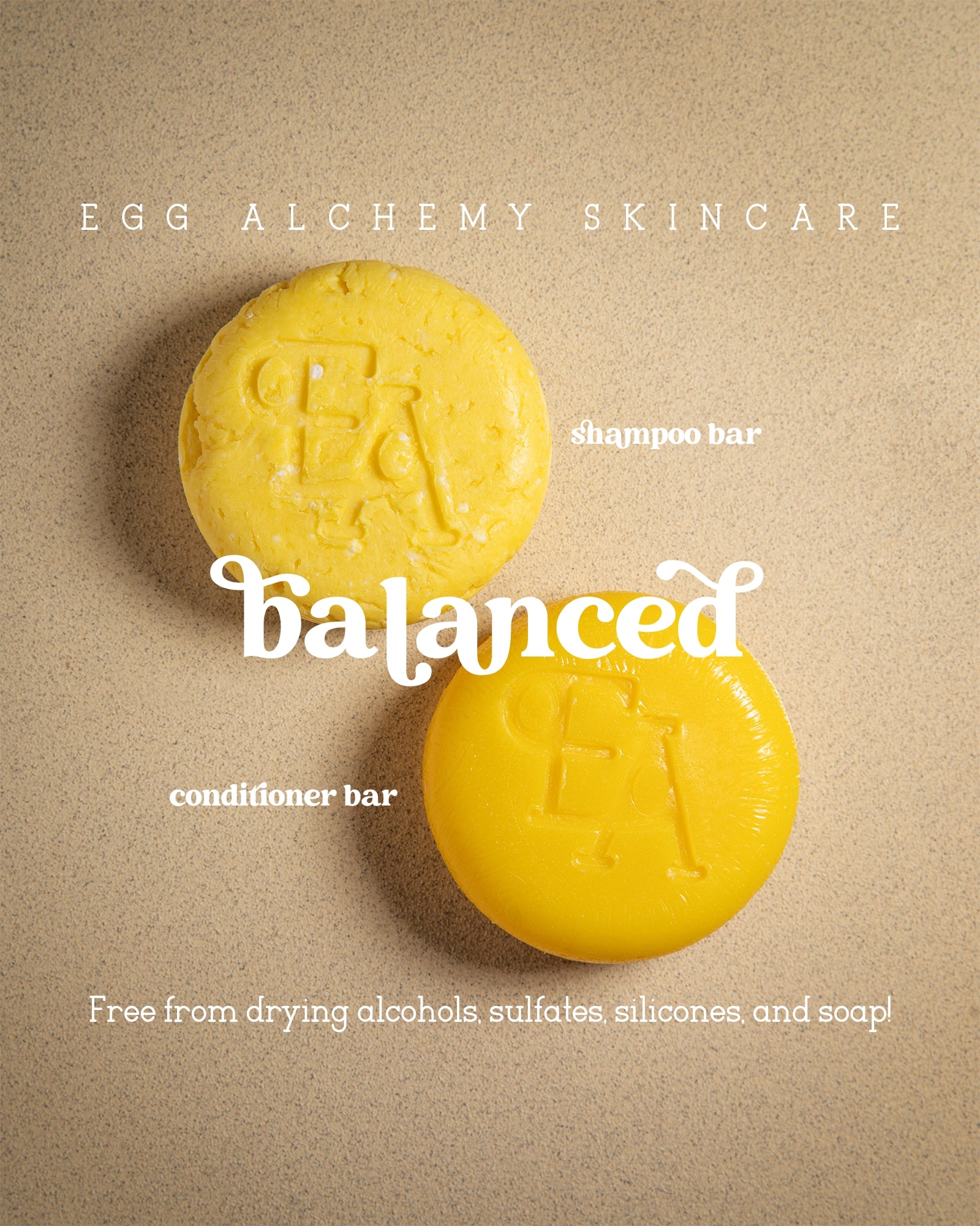 Thoroughly wet hair. Massage bar directly onto scalp and hair strands, or work up a lather in hands and apply with fingertips. Rinse and follow with an Egg Alchemy Solid Conditioner Bar.